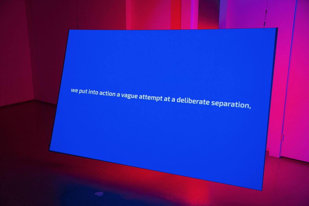 The exhibition is a 5-channel video installation narrated by a text generated by a neural network A.I. trained on research surrounding the project ranging from the 1970’s Russian science fiction novel Roadside Picnic to Hito Steyerl’s essay A Sea of Data: Pattern Recognition and Corporate Animism. Poetic fragments and sci-fi imaginings blend together with academic jargon and theory-out-of-context to provide a disparate guide to the real and virtual visual spread across the screens. Increasingly, large-scale computer-controlled systems are being deployed to understand terrestrial systems. Artificial intelligence is used on a planetary scale to detect, analyze and manage landscapes. But in a similar scenario wherein written language – being an attempt at accurate description and communication – gave rise to the poetic metaphor as a translation of intangible experience, emergent A.I. opens the space for an other-than-human phrasing and oblique perception of the complexities of ecosystems.