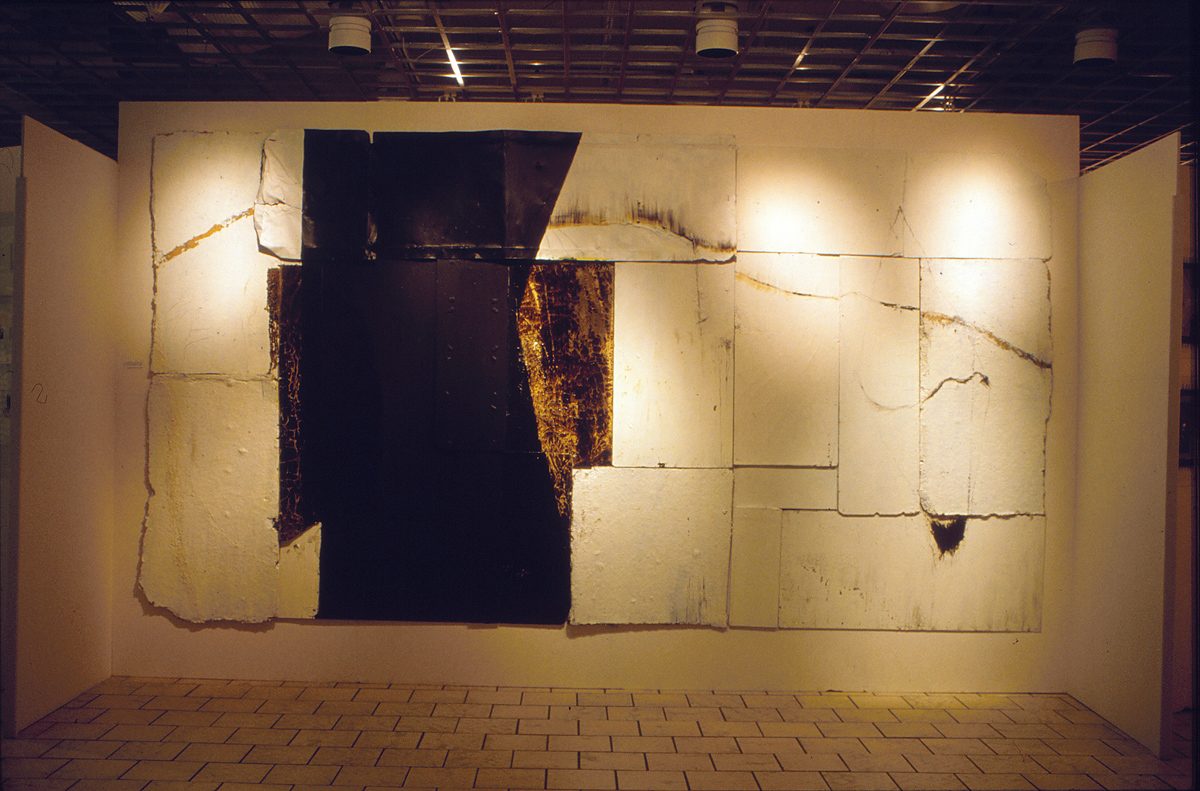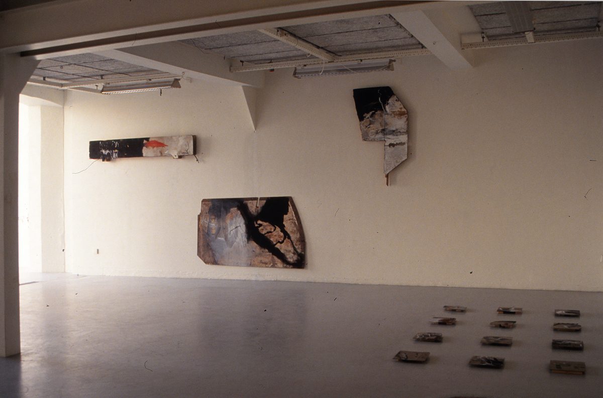 Jeg har malt meg gjennom mange faser. I noen år var materialiteten det viktigste. Containere, garasjer og nedrivnings/oppussingssteder var nyttige for å finne materialer med spor etter bruk. Biter av isopor, stålplater, glass eller trematerialer ble montert sammen og malt, tegnet hugget i eller brent. Jeg kunne starte med tre-fire biter og montere på flere etter behov. Ett av arbeidene besto av 23 biter som jeg hadde malt på blant annet med tjære og som viste seg aldri å tørke. Disse materialbildene/maleriene var neddempet i fargebruken. Jeg brukte stort sett svart, brunt, hvitt og enkelte innslag av rødtoner. Rundt 2000- tallet ble materialiteten i flaten mindre framtredende og jeg begynte å bruke et større fargespekter.