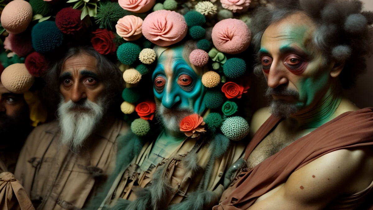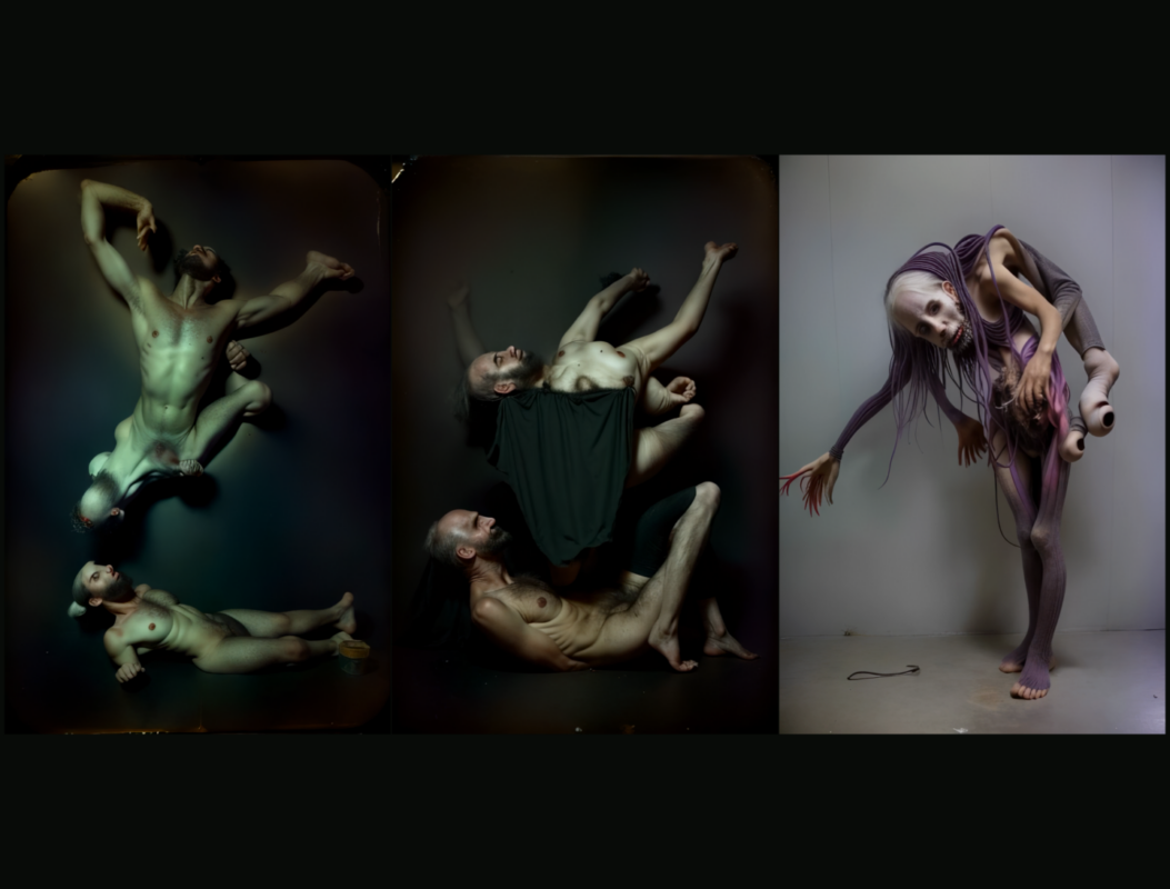 I denne miksen av tekster som frembrakte visuelle ideer startet jeg å leke med KI høsten 2022. Jeg lurte på om KI «drømme» de følelsene jeg fikk da jeg leste og bearbeidet innholdet i tekstene. Dypt i bakhodet mitt ligger ideen om at vi, menneskene som lever i dag, representerer den seneste versjonen av oss selv i evolusjonens utvikling. Hva betyr det? Hvilke bilder og fortellinger kan vise menneskes tilstand på randen.