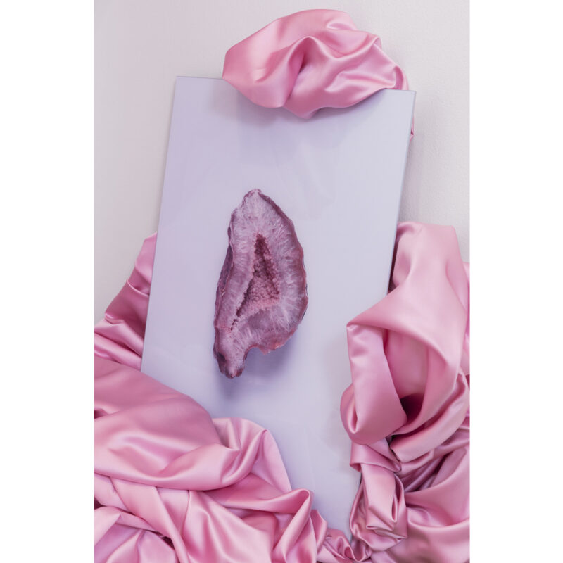 I skrivende stund har jeg begynt med et helt nytt collageprosjekt der jeg kombinerer stein, hud og silke. Det har fått arbeidsnavnet Tunica Mucosa og balanserer som ofte med mine bilder på randen mellom det vakre og groteske.