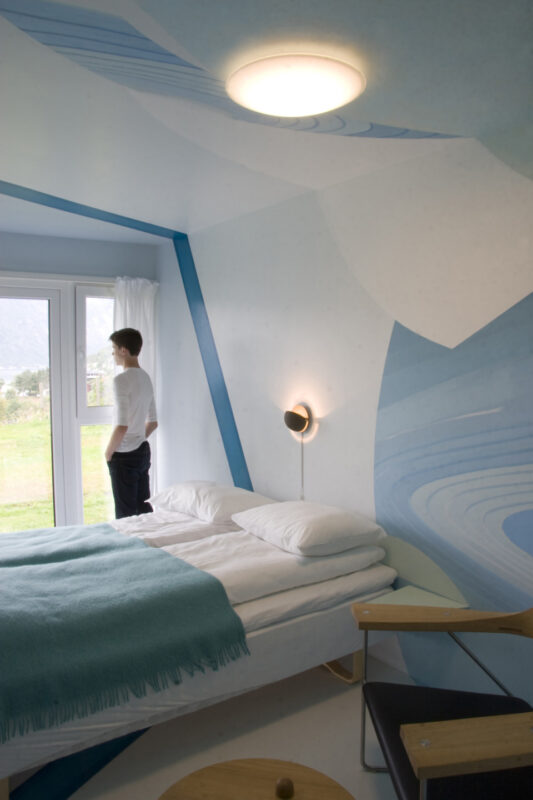 Jeg har laget en del såkalte «beboelige verk». Mitt arbeid til avgangsutstillingen i Bergen kunsthall (2001) var et totalmaleri (vegger, tak og gulv) i en hybel som ble leiet ut. Det ble arrangert kombinert kunst- og utleievisning. Visningen ble filmet og filmen vist i Bergen kunsthall. I 2014 laget jeg arbeidet «Rom 114» på Eidfjord Fjell og fjord hotell, også et beboelig verk hvor maleri, lyssetting, enkel møbeldesign og en ganske spektakulær utsikt fløt over i hverandre. I 2020 hadde jeg en arbeidsperiode i Tag Team Studio. Der laget jeg, under Koronaen, min første tegnede installasjon som bar tittelen «Grip meg». Jeg dekket en mengde bokpapp-plater med flere lag kullpulver, og jobbet på en arkitektonisk måte med disse. Jeg opplevde en slags endring i materialiteten til tegnemediet som interesserte meg. De store kullflatene gav assosiasjoner både til metall og til myke gulvtepper. I prosjektene «Breakout Room» og TID (2021) utforsket jeg denne materialiteten ytterligere. Med disse prosjektene startet også samarbeidet med vokalensemblet Tabula Rasa. Ensemblet jobber med improvisasjon med menneskestemmen som viktigste instrument, og de benytter seg gjerne av teatralske virkemidler. I «Breakout Room» (Oseana kunst & kultursenter) inviterte jeg ensemblet til å tolke mine verk og installasjonen som helhet. I prosjektet TID utforskes forestillinger om, og opplevelser av, fenomenet tid. TID har blitt både en installasjon, en separatutstilling (Kunstgarasjen 2021) og et tverrfaglig samarbeidsprosjekt i form av en forestilling. I samarbeidet var også akkordeonist Jostein Stalheim og komponistene Knut Vaage, Eilert Tøsse og Vegar Guleng med. Det er berikende å samarbeide på tvers av kunstartene og se hvordan de løfter hverandre. I 2023 har jeg også samarbeidet med musikere/komponister. Mezzosopran Eva B. Landro, pianist Knut Christian Jansson og jeg laget konsertforestillingen «Havet i Musikk og billedkunst» (Fridalen kirke), og nå i høst laget jeg en installasjon til noen intime «silokonserter» på Bergendal gård.