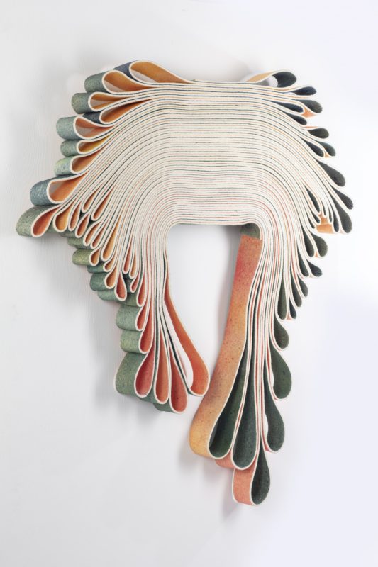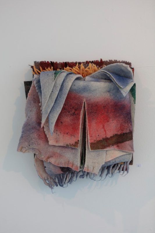 Jeg har arbeidet med tekstil på ulike måter i snart 20 år. Tidlig i 20-årene gikk jeg på Kunstskolen i Kabelvåg, der jeg ble fanget på stofftrykksalen og kom aldri ut igjen. På den tiden trodde jeg at jeg skulle bli maler, men jeg fant noe i tekstilene som jeg aldri har sluppet taket i. Tekstil er et materiale som innbyr til å bli formet til noe, det er taktilt og innbyr til å bli tatt på. Jeg lagde mine første skulpturelle arbeider da jeg gikk på Kunsthøgskolen i Bergen. Senere var det andre problemstillinger som tok meg. Jeg lagde blant annet brukstekstiler med trykk i flere år. I disse årene følte jeg ofte at jeg ikke var helt på plass. Og etter hvert begynte jeg å se på studentarbeidene mine på en ny måte. Og det har ført meg dit jeg er i dag i mellomrommet mellom det skulpturelle og det maleriske.