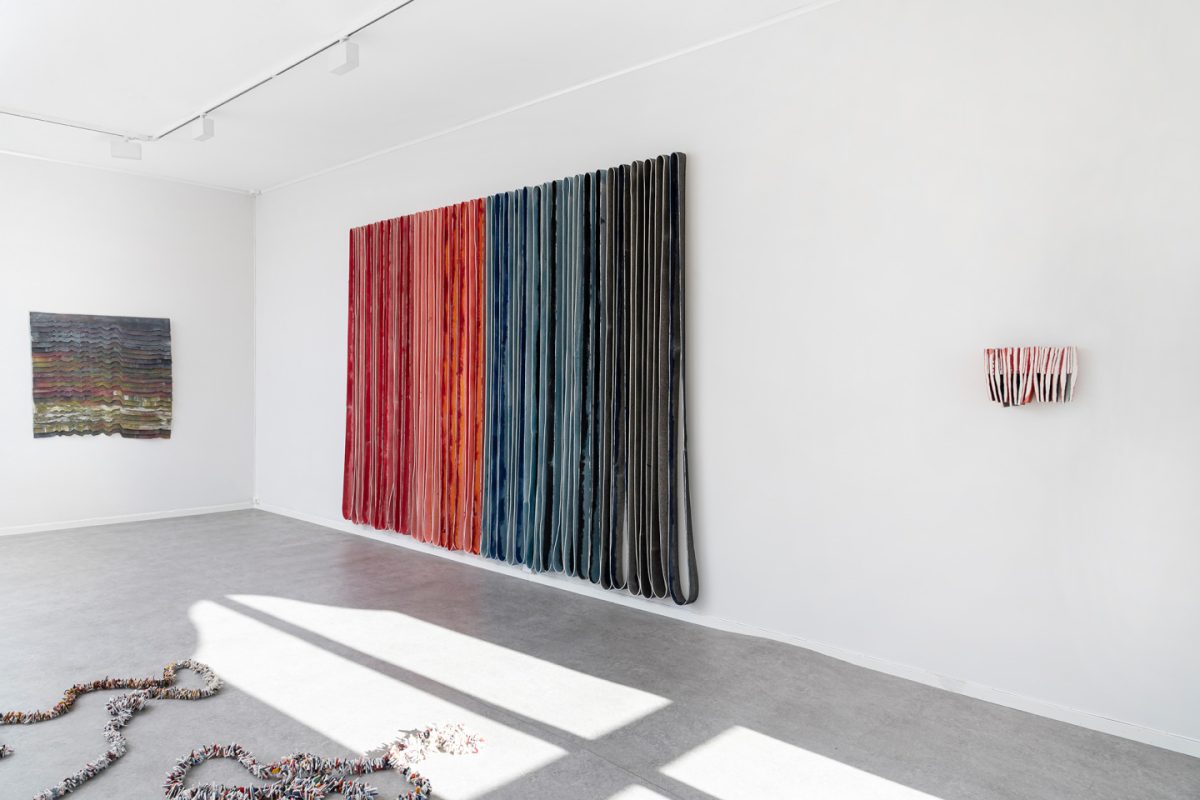 I de siste årene har jeg jobbet hovedsakelig med store skulpturelle arbeider i ullfilt. Arbeidene har både to- og tredimensjonale kvaliteter, og forholder seg som oftest til vegg. Arbeidene er sammensatt av fargede strimler eller moduler i ullfilt. Arbeidene er kuttet eller klipt for hånd for så å bli montert sammen med lim, håndsøm eller monterer direkte på vegg med spiker eller skruer. Jeg liker veldig godt å arbeide i store formater, og arbeidene mine er ofte monumentale. I atelieret lager jeg også akvareller og tegninger, men det er en måte å tenke på og ikke noe som jeg har hatt lyst til å vise frem. Men dette er noe som er i utvikling.
