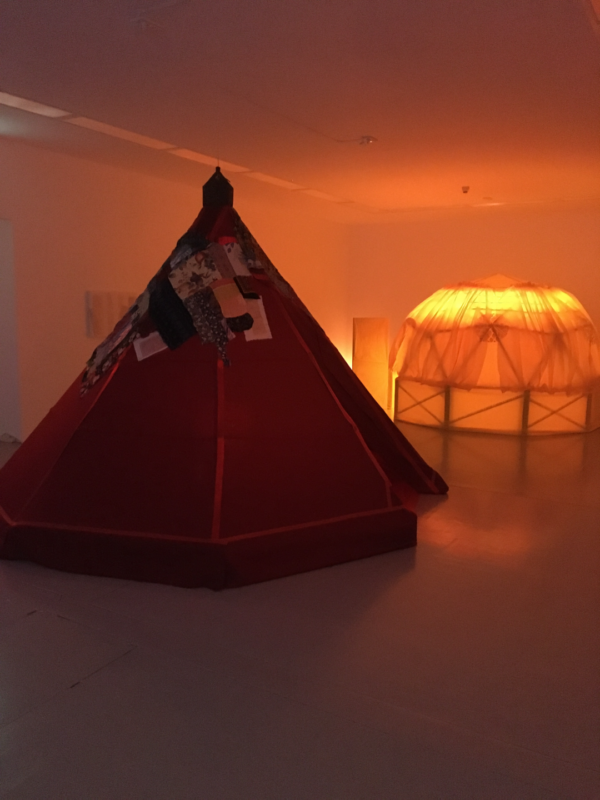 Handmade shanties, which present a unique language and story to tell, have sparked my creative interest. I play with scale and habitability to create homelike atmospheres within traditional architecture, exploring ideas of comfort and inclusivity. My interactive performances and installations foster community involvement through their unique occupation of space. By setting up “camp” within a formal setting, I invite the viewer into a social atmosphere. I utilize physical constructions, paintings, drawings, sculptures, workshops, documentaries, light, audio, text readings, voiceovers, and video animations to create surprising spaces with dreamlike atmospheres, becoming part of an experience that explores the effort to preserve ancestral rituals in the face of dislocation. For some, my installations evoke forgotten memories, while for others, they serve as a threshold into a foreign experience.