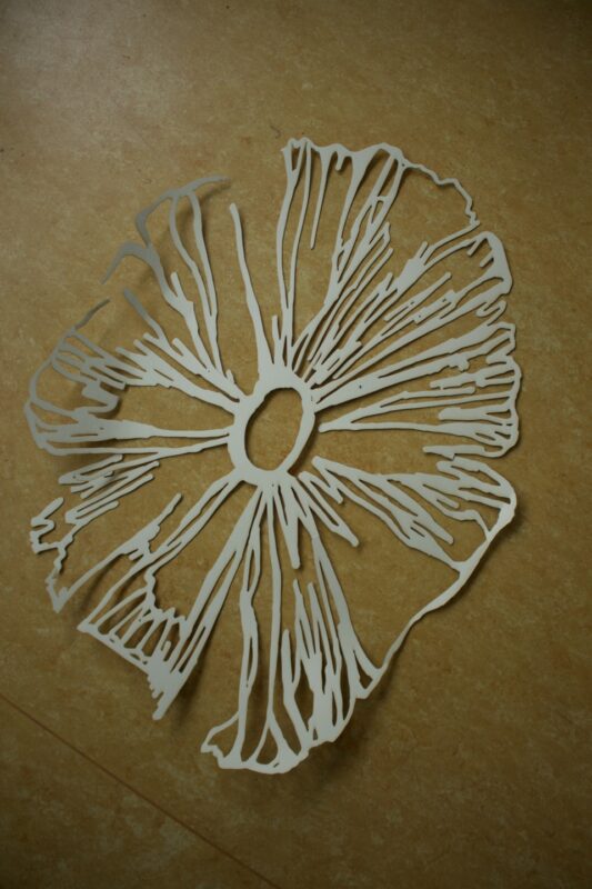 I am drawn to processes that hold memory: plaiting, stitching, mat-weaving, cutting, knotting, painting, assembling, print making, painting. I find pausing and meditation in repetition, in the hand that returns again and again. I work in dialogue with digital processes of mark making like laser-cutting and engraving.