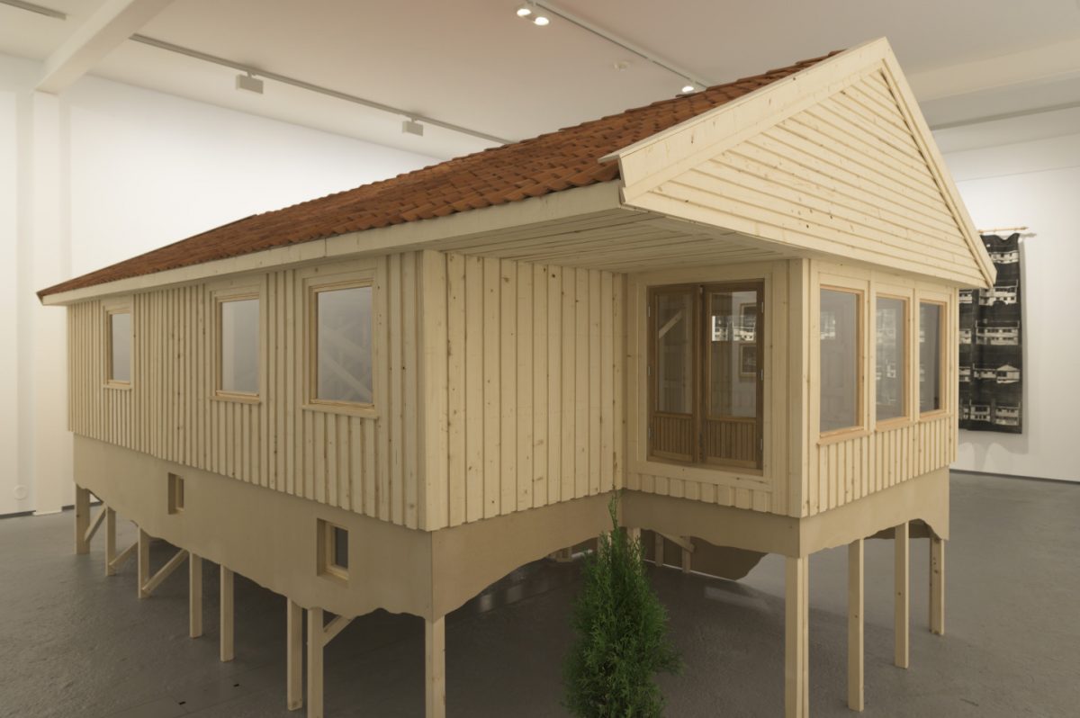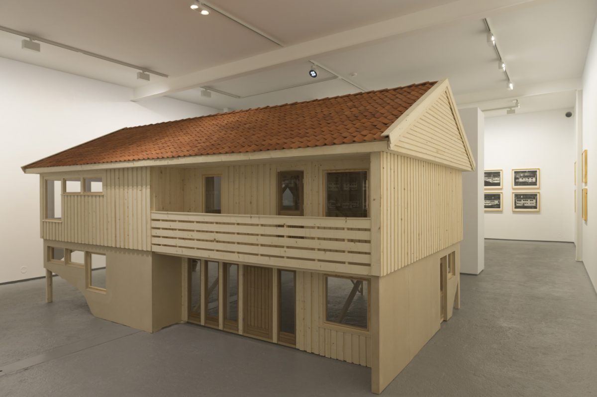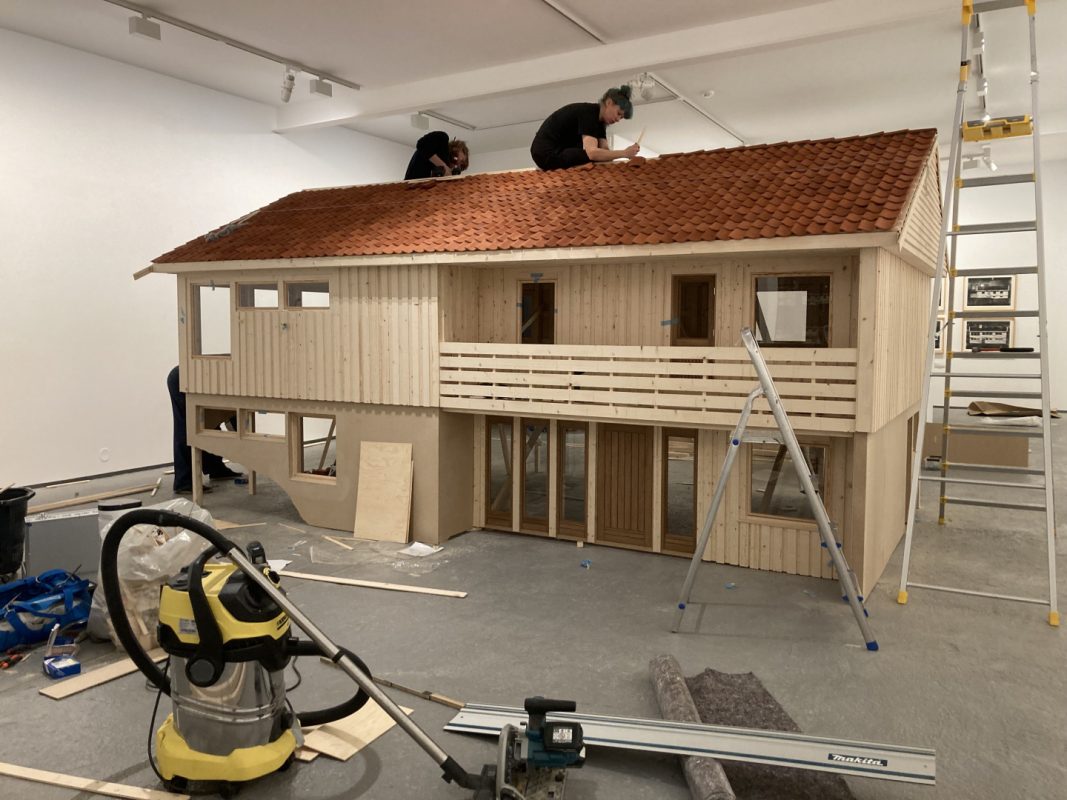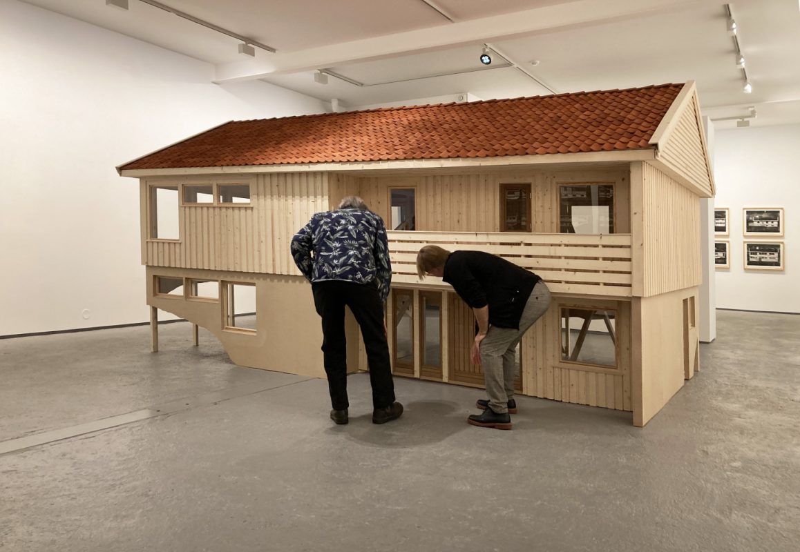Til den siste utstillingen på Dropsfabrikken i Trondheim lagde jeg en nedskalert versjon av mitt barndomshjem, et hus med forbilder i Block Watnes ferdighus. Utstillingen het Tilpasning/Nye gardiner og bestod av en stor arkitekturmodell som var en nedskalert versjon av mitt barndomshjem i skala 1:3 og en serie tresnitt på papir og tekstil der motivene var hentet fra Block Watnes kataloger fra samme tid. Her måtte vi lage både takstein, dører, vinduer og kledning osv. – vi lagde over to tusen takstein for hånd.