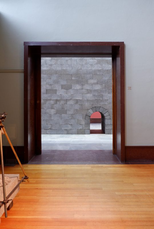 På Vigelandsmuseet tok det en litt annen retning, og det er jo blant de heftigste utstillingsrommene i Norge, det var en utstilling som jeg jobbet ganske lenge med, jeg hadde en lang tenke- og skissefase, og skisset mye og leste mye om Vigeland. Jeg ble fascinert av hvor ulike vilkår vi hadde for å lage kunst, Vigeland og jeg. I Vigelands tid var materialene dyre og arbeidskraften rimelig, nå er materialene rimelige og arbeidskraften dyr, og dette ble premisset for utstillingen som hette formenes økonomi, der jeg jobbet med monumentalitet og materialitet. Jeg bestemte meg for at jeg skulle lage alle arbeidene i lettklinkerblokker, det som ofte kalles lecablokker; de er rimelige og enkle å jobbe med.