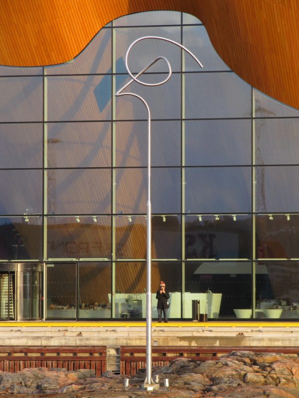 Danseren utenfor Konserthus Kilden, Kristiansand er basert på samspillet mellom to elementer som er festet på toppen av en mast og beveges av vinden. Skulpturen fremstår som en eneste gjennomgående linje der skillet mellom elementene er usynlig. Delene er balansert og lagret slik at de er i stand til å bevege seg uavhengig av hverandre med skiftende hastighet og retning. Resultatet er en bølgende linje som tilsynelatende stadig skifter form på uforventet vis:
