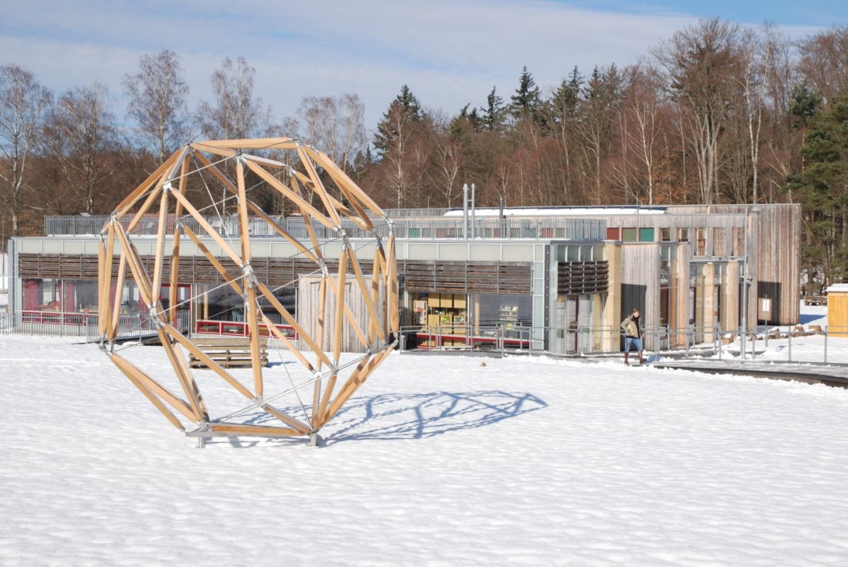 Skulpturen Campanile ved Ny Hamar Katedralskole består av 3 separate bueelementer som er koblet sammen uten å røre hverandre ved hjelp av en spent stålvire. Her er materialspenningen et konstruktivt element som utnyttes for å oppnå et svevende inntrykk. Tyngdeloven virker å være satt ut av spill, buene klatrer opp viren de selv spenner opp:
