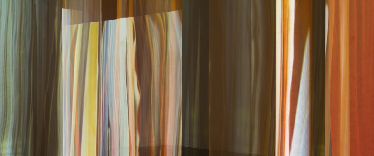 I det siste har jeg jobbet vekselvis med romlige lys/fargeinstallasjoner og to-dimensjonale, tosidige, digitalt trykkede tekstilarbeider.